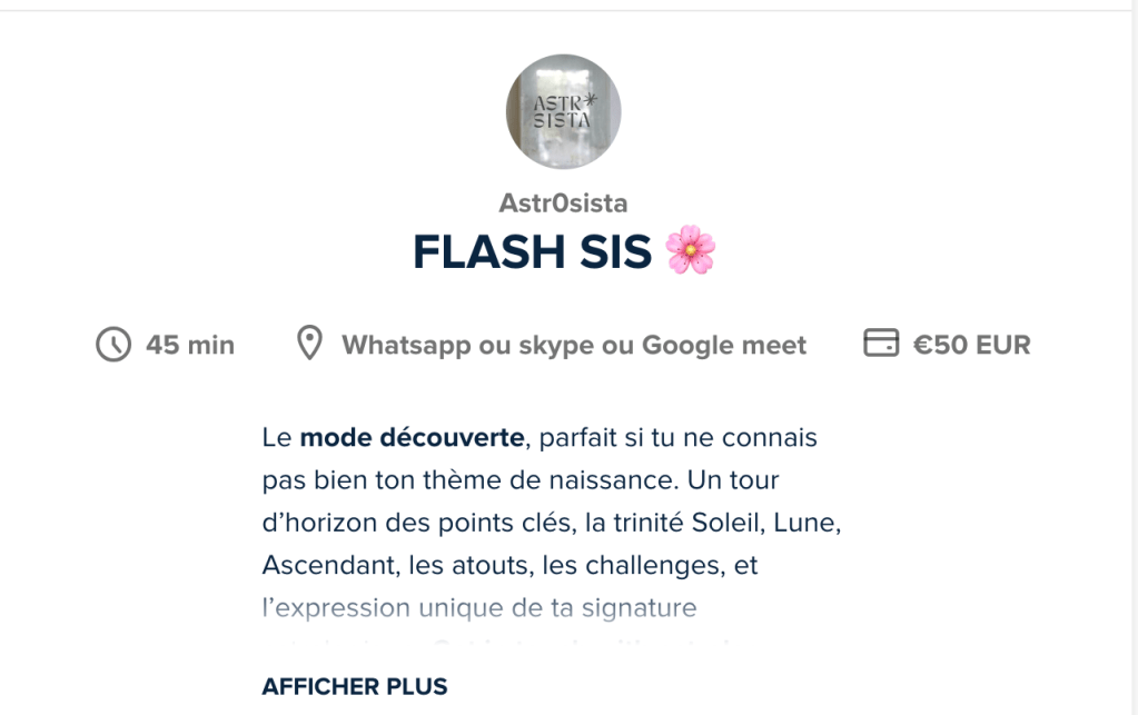 Mon procédé: Après avoir pris rendez-vous sur Calendly ou bien répondu au formulaire de contact pour plus d’informations, deux options te seront proposées: un rendez vous en visio ou un audio avec ta lecture